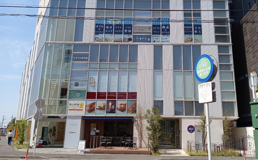お店は、東武アーバンパークライン新鎌ヶ谷駅の駅前のビルの1階にあります。