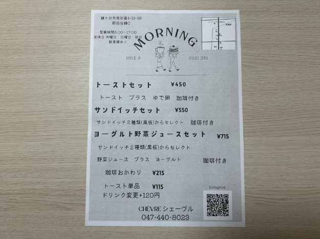 午前8時から11時まではモーニングタイムです。
