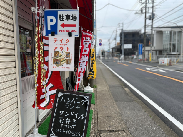 初富交差点から、ケーヨーデイツー鎌ケ谷店方面に進み、「鎌ケ谷整形外科・内科」の向かい側にお店はあります。