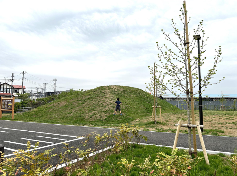 身長140センチの息子と比べて、結構大きな丘です。