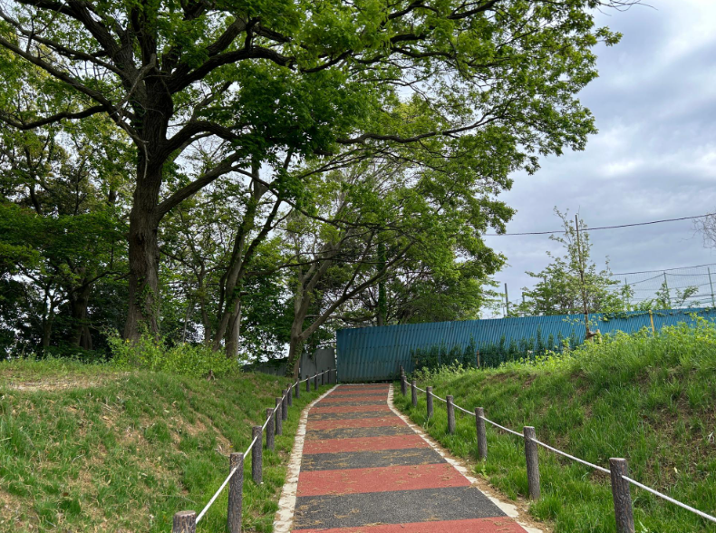 駐車場からは丘が見えます。さっそく、広場に行ってみよう!