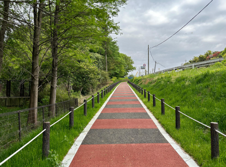 ゆるやかな坂なので、足腰を鍛えるのによさそうな道です。