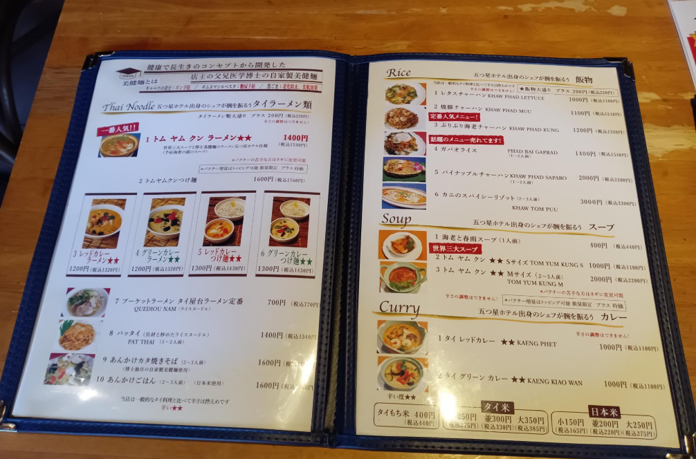 昔は、ラーメン店でしたが、「トムヤンクン」が健康に良いという話を聞き、タイ料理もスタート。