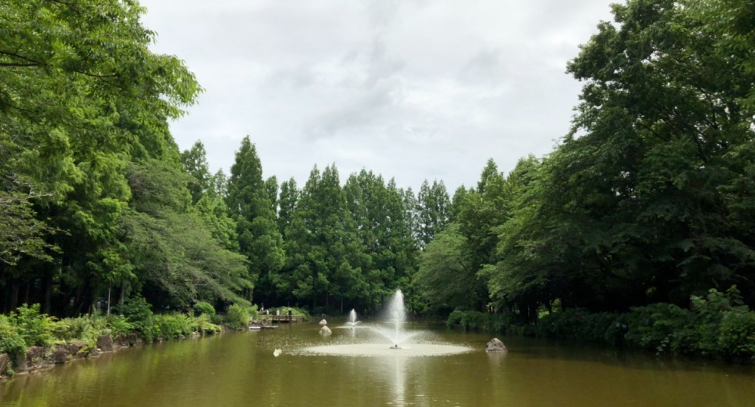 公園の中心には、ひょうたん型の大きな噴水池があります。