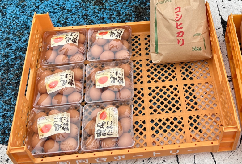 新鮮な卵とお米も。卵かけご飯にしたら、美味しそうですね!