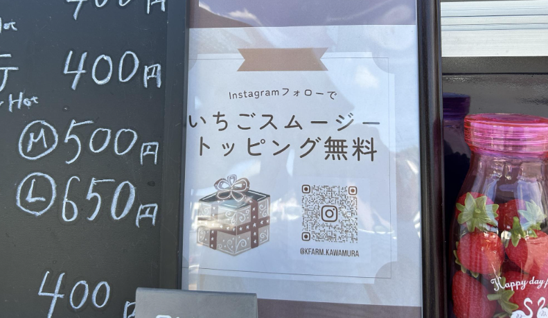 お店のInstagramをフォローすると、いちごスムージーのトッピングが無料でサービス!