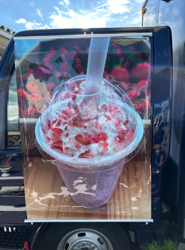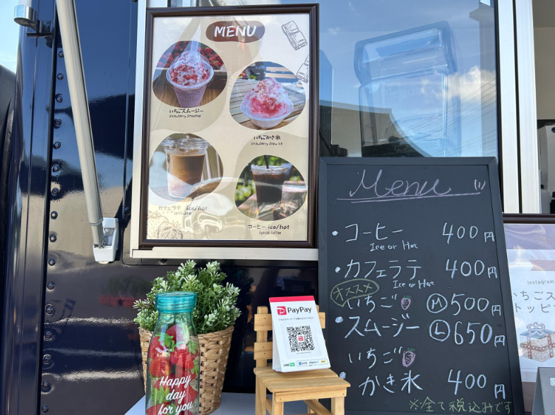 メニューは、コーヒー、いちごスムージー、いちごかき氷など。