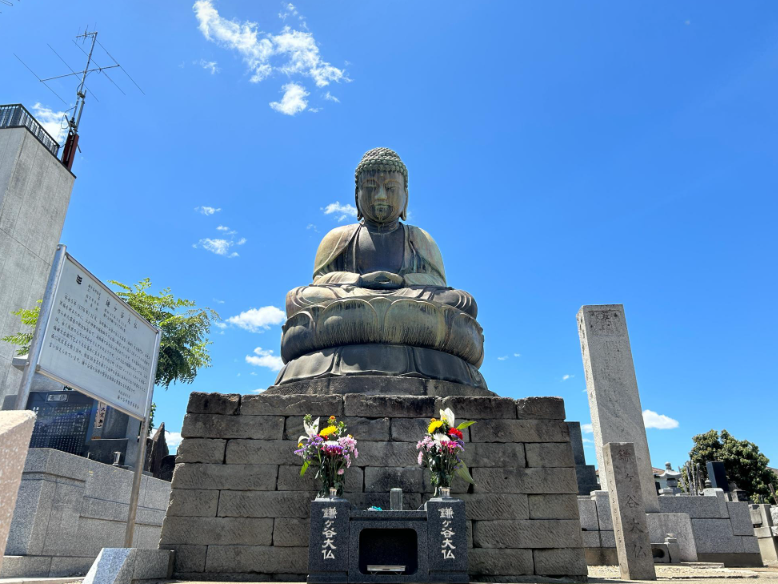 京成松戸線・鎌ヶ谷大仏駅の北口を出て、白井方面に進むと「鎌ヶ谷大仏」が見えます。