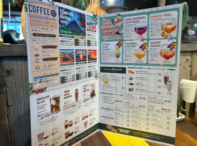 ハワイのコナコーヒーやハワイアンドリンクも美味しそう。