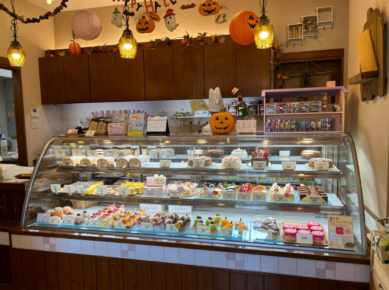 お店の中に入ると、ケーキのショーケース、焼き菓子などあります。