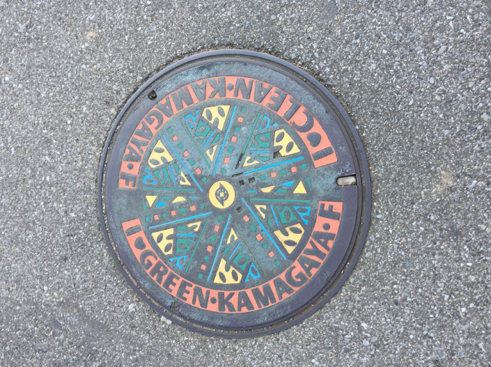 鎌ケ谷市にもデザインマンホールがあります。こちらは、マンホールカードのデザインに採用された蓋。カラフルですね。