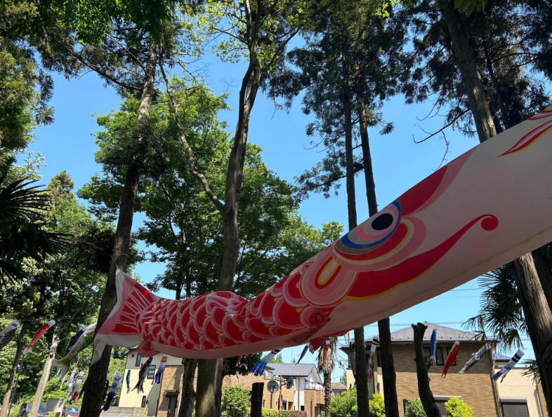 5メートルほどある大きな鯉のぼりも泳いでいます。