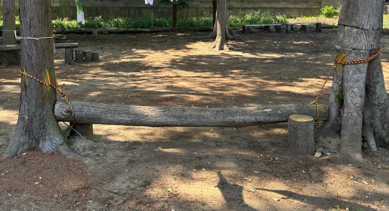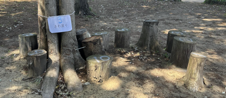 木の幹をいかした「さわわたり」。自然を活かした遊び場もいいですね!