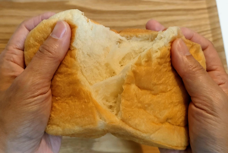 生食パンは、12cmほどの小ぶりのパンです。パンの耳まで、ふわっふわ。