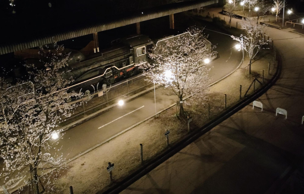 市制記念公園では、夜桜のライトアップも行われています。ライトアップされた桜は情緒あふれる風景でした。