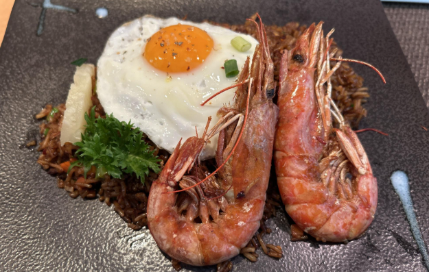 もう一人の友人はナシゴレンを注文。海老がのっていてゴージャス!