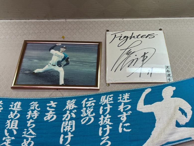 大谷翔平選手のサインは、ファイターズ時代の写真と共に飾られていました。
